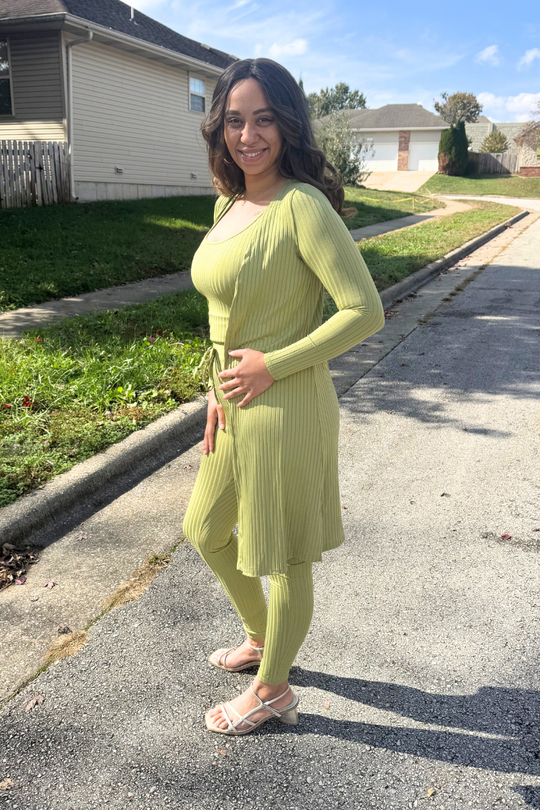 This three-piece ribbed knit set delivers sophisticated layering in a versatile. The coordinated ensemble features a fitted silhouette that flatters while the ribbed knit fabric provides gentle stretch and breathability for all-day comfort. Mix and match...Regular price $24.00