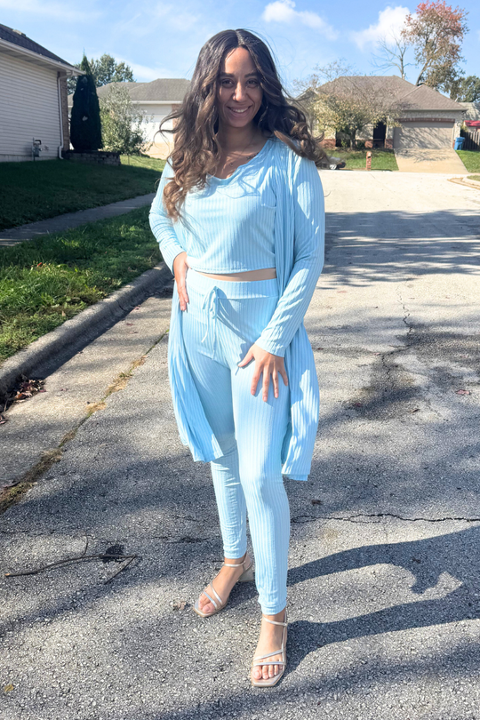 This three-piece ribbed knit set delivers sophisticated layering in a versatile. The coordinated ensemble features a fitted silhouette that flatters while the ribbed knit fabric provides gentle stretch and breathability for all-day comfort. Mix and match...Regular price $24.00 -