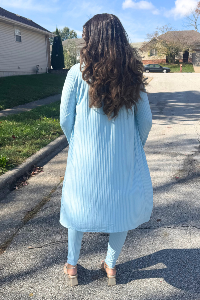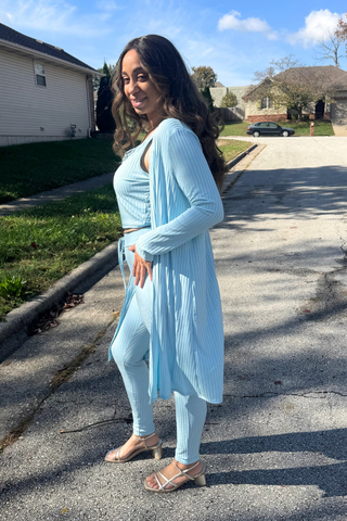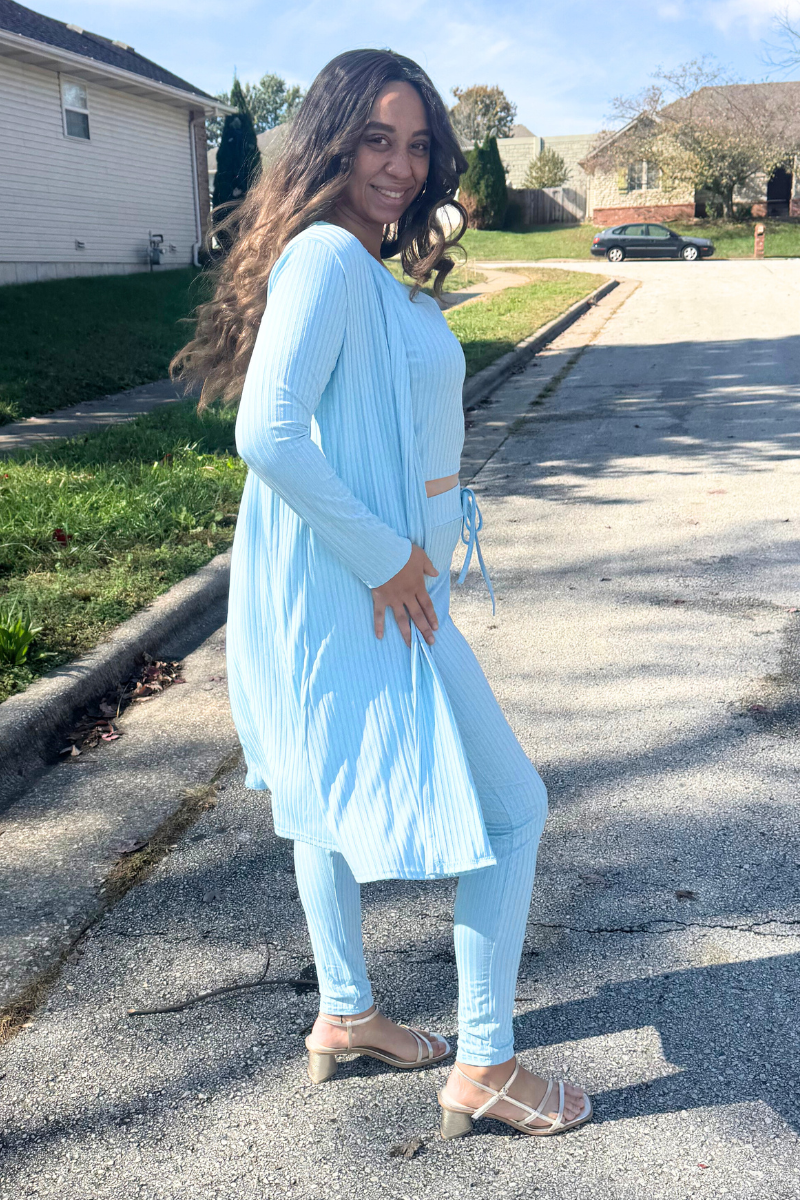 This three-piece ribbed knit set delivers sophisticated layering in a versatile. The coordinated ensemble features a fitted silhouette that flatters while the ribbed knit fabric provides gentle stretch and breathability for all-day comfort. Mix and match the pieces for multiple styling options—wear them together for a cohesive look or separate them into your everyday rotation. The quality construction ensures durability through frequent wear and washing, making this set a practical investment for a modern wardrobe.