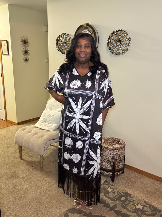 The Queen B dress showcases authentic African print fabric, expertly tailored to elevate your wardrobe with vibrant cultural style. Designed to offer both comfort and a flattering silhouette, this dress highlights intricate patterns that celebrate heritage...Sale price $48.00Regular price $65.00